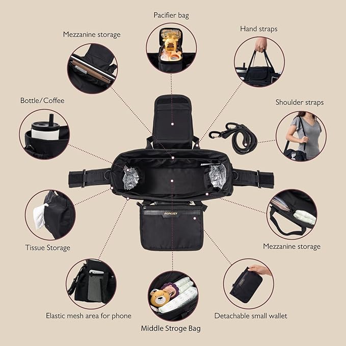 - Extra Large Storage Space: Meet all your travel needs at once with ample space and multiple compartments for easy organization, including a detachable small wallet, a mesh area for your phone and tissues, and a convenient pacifier pocket.