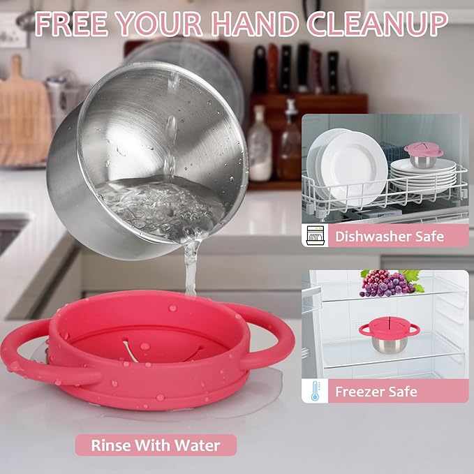 - Easy Clean for Busy Parents - The stainless steel snack cups and two silicone lids are dishwasher-safe - just toss them in and go. Always stay fresh and clean, even after messy snacks, they’re always ready for the next adventure - just quick cleanup for you and more fun for your little one!