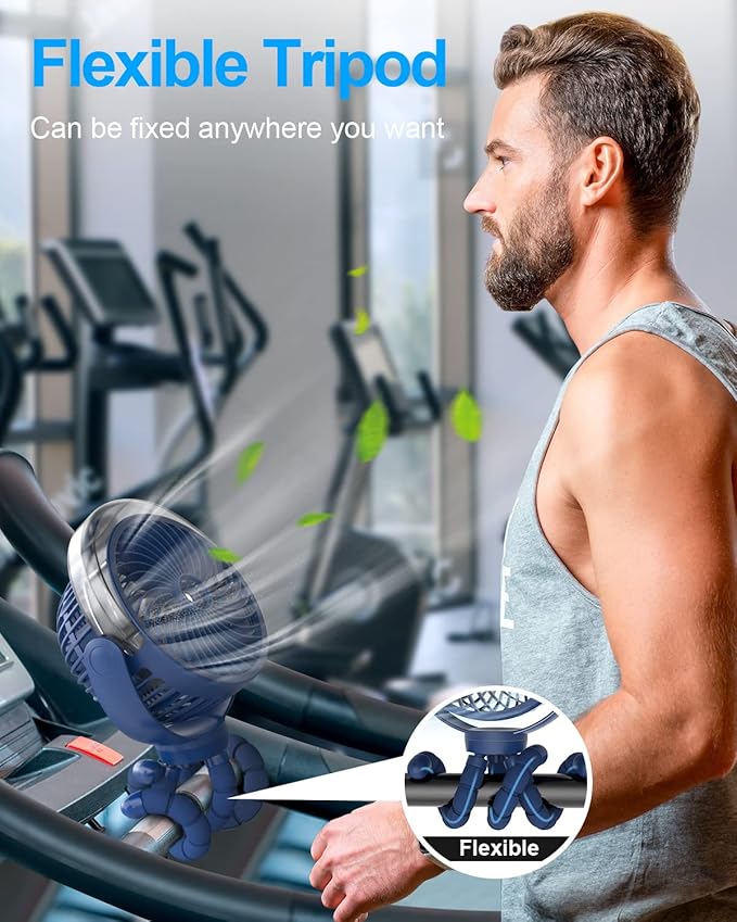 Misting Stroller Portable Fan, 6000mAh Battery Operated Fan with 3-Speed, 360° Rotation, LED Light, Flexible Tripod for Baby, Dark Blue