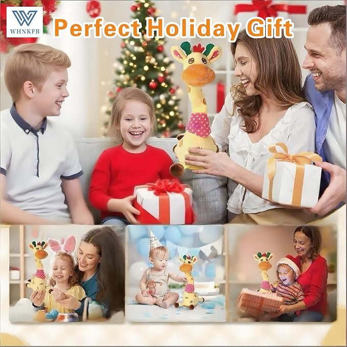 Dancing Giraffe Plush Baby Toy 6-12 Months - Talking Giraffe Stuffed Animal Singing Songs & Repeat What You Say, Musical Light Up Toy for Toddlers 1-3 Years Boy Girl, Soft Interactive Gift