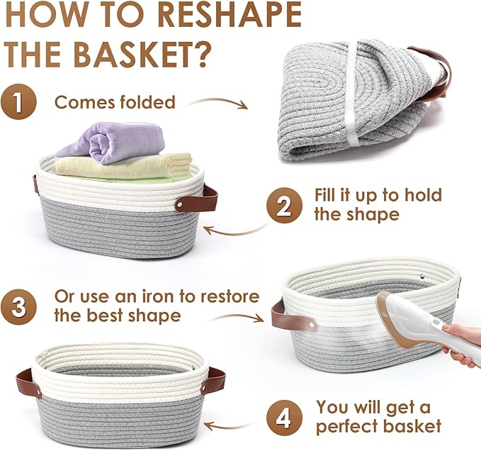 - High-quality Materials: Our woven baskets use cotton rope and leather handles. The cotton rope is tightly woven for flexibility and strength, resisting breakage and maintaining shape. The breathability of the cotton rope prevents items from becoming stuffy or damp, keeping them fresh.