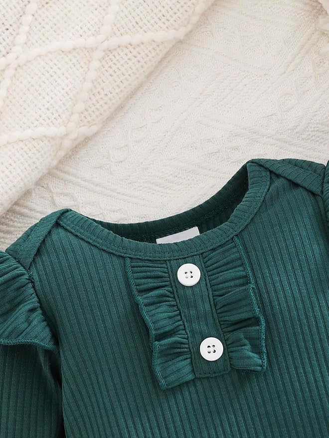 • Fashionable Classic Design:Adorable flower ruffle romper top/pant + solid pant/shirt matching cute bow knot headband express great love from family.Convenient Snap closure for easy diaper changes.
