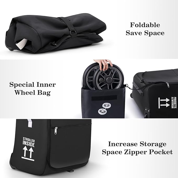 - Effortless Carrying Stroller Bag for Airplane: Our foldable travel bag is equipped with smooth wheels, multiple handles, and a front luggage tag pocket for quick identification, allowing for a seamless journey