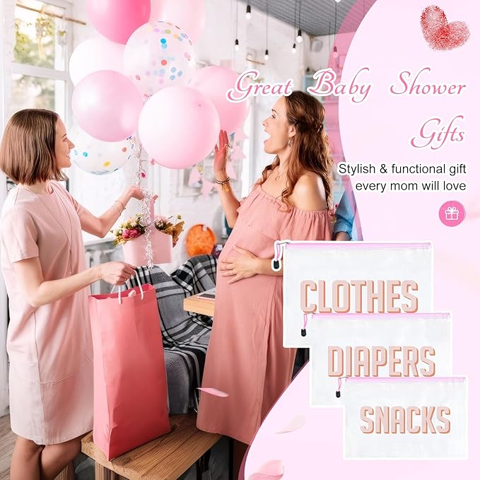 - Designed for Labor and Delivery Hospital Bag with Zippers - Each pouch is equipped with a sturdy zipper closure, ensuring your items stay securely in place. Labeled with CLOTHES, DIAPERS, and SNACKS, this 3-piece pouch set keeps your hospital bag organized and items easily accessible during labor and postpartum recovery