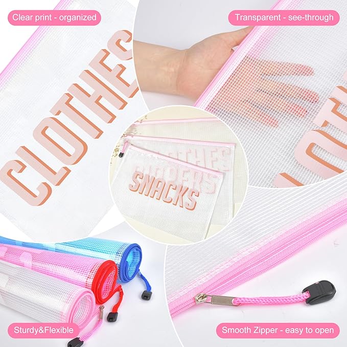 - Durable, Lightweight, and Transparent - Made of sturdy mesh PVC material, these pouches are water-resistant, lightweight, and see-through — making it easy to identify what’s inside without opening them