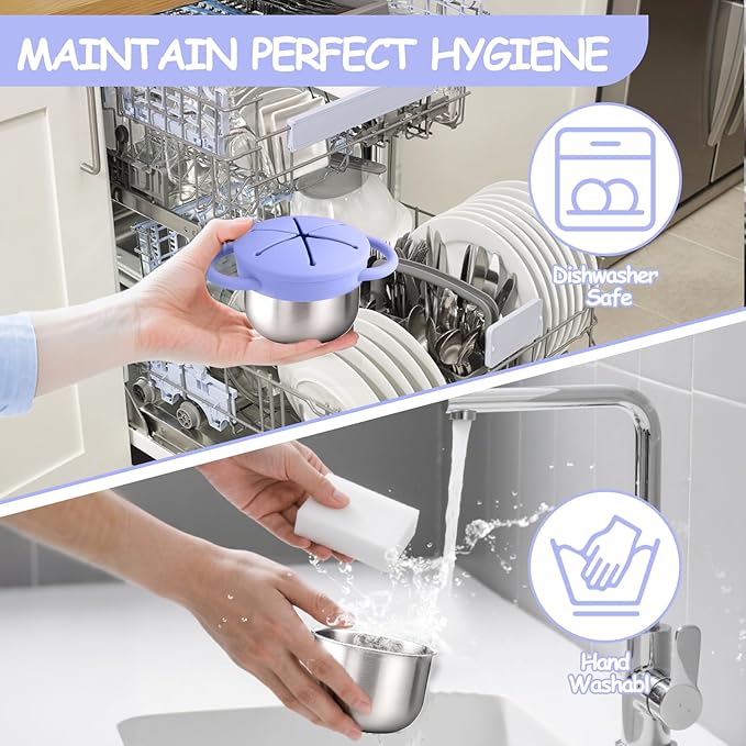 2-Pack Stainless Steel Snack Containers for Kids with Spill-Proof Silicone Lids & Handles - 3-in-1 Baby Snack Cups, No-Spill Toddler Snack Box, Perfect for On-the-Go Healthy Eating(Blue+Purple)