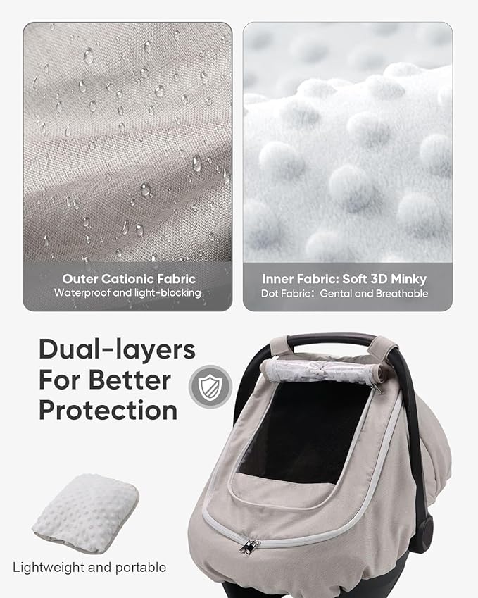 - 【 Dual-Layer Comfort & Protection】 The waterproof baby car seat cover features a waterproof cationic fabric exterior shielding your baby from rain, snow, wind. The soft, skin-friendly 3D minky dot fabric inner layer provides a gentle, soothing touch for ultimate comfort during travel. The cover Suitable for rainy days and winter.