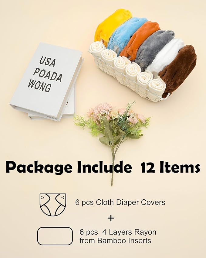 - Packing List: 6 Pack Flannel Baby Cloth Diapers with 6pcs 4-Layers Rayon from Bamboo Inserts. Complete solution for lasting dryness and comfort.