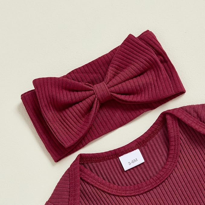 Newborn Baby Girls Rompers Knit Round Neck Long Sleeve Infant Fall Jumpsuits with Headband Coming Home Outfit