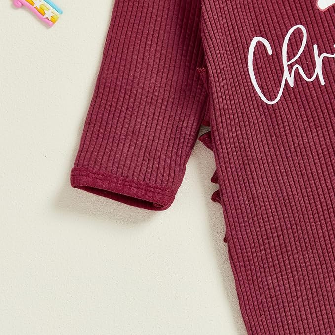 - Features: Baby fall winter bodysuits, newborn christmas romper use letter print, round neck, ruffle sleeve, long sleeve design, matches headband, the snap closures at the bottom make diaper changes a breeze, making it a convenient choice for busy parents