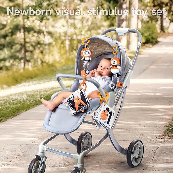 TUMAMA KIDS Black and White Baby Toys, High Contrast Rattle Toy & Soft Book Set,Hanging Toys for Baby Gym,Car Seat Toys for Babies,Early Educational Toys for Infant Babies 0 3 6 9 12 Month