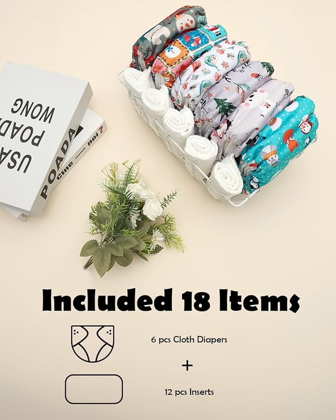 - Packing List: 6 diapers + 12 inserts. Complete solution for lasting dryness and comfort.