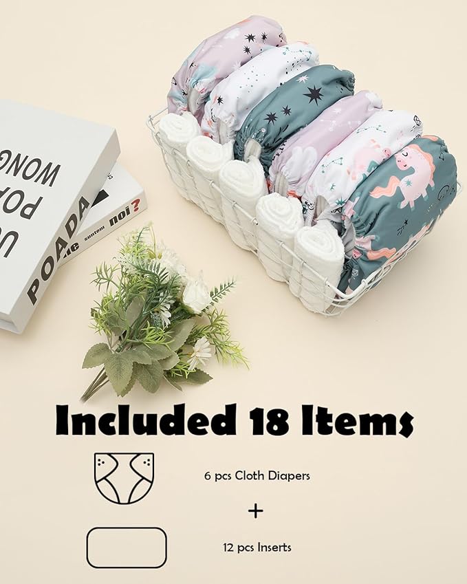 - Packing List: 6 diapers + 12 inserts. Complete solution for lasting dryness and comfort.