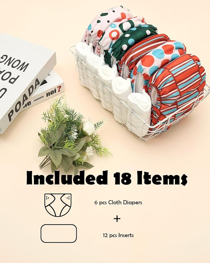 - Packing List: 6 diapers + 12 inserts. Complete solution for lasting dryness and comfort.
