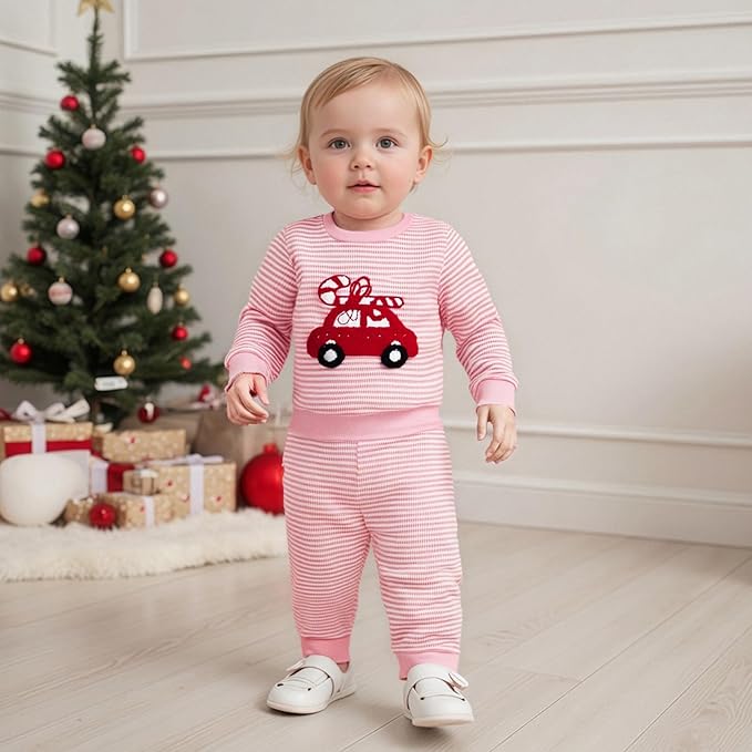 - 2-Piece Set: Long-sleeve sweatshirt + striped jogger pants with rib cuffs.