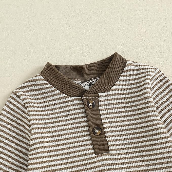 - Features: Unisex baby trendy ribbed set, long sleeve and snaps closure bodysuit tops, easy diaper changing; elastic waistband long pants, stretch and snugger fit.